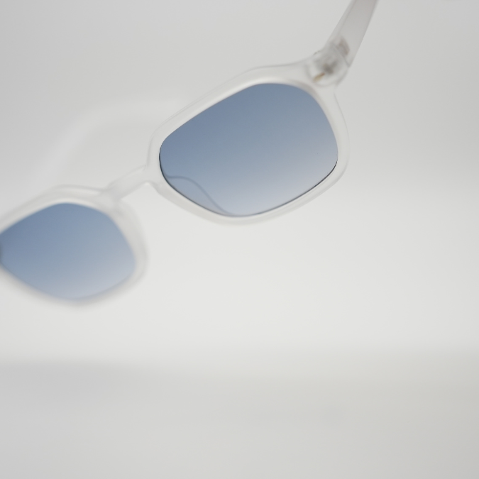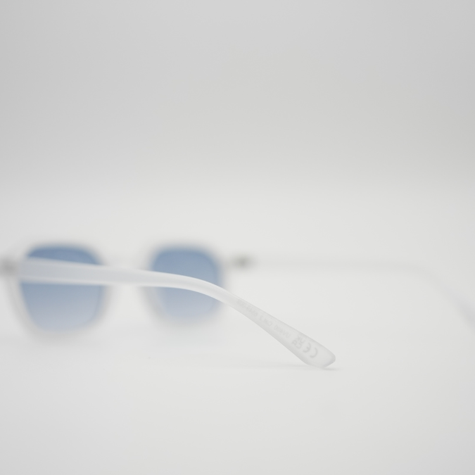 Στυλάτος Σχεδιασμός: Κλασικό διάφανο πλαίσιο με ανοιχτούς γαλάζιους φακούς, προσφέροντας ένα κομψό και σύγχρονο look.